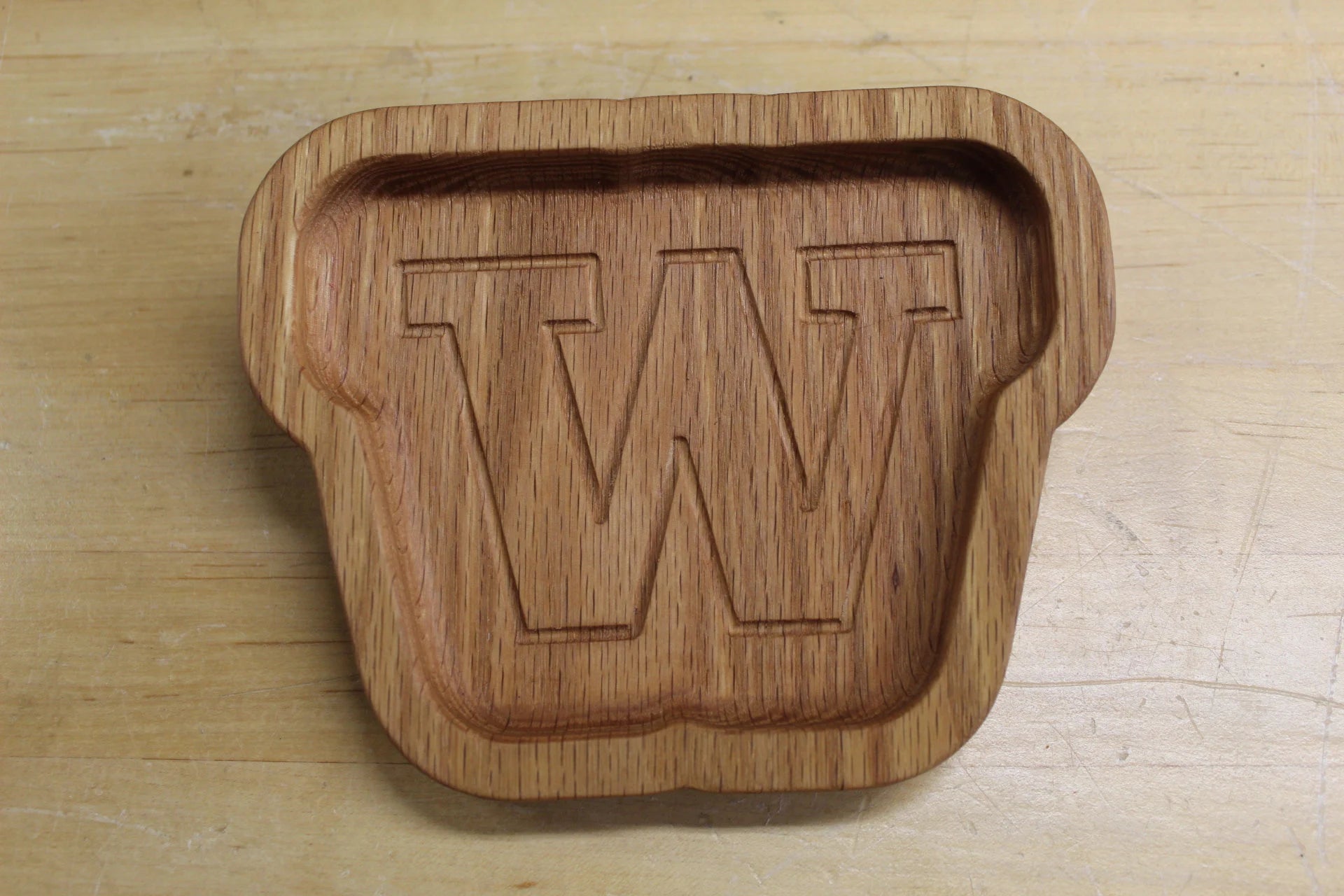 These logo catch-all trays are made from various types of wood and are treated with food safe mineral oil.